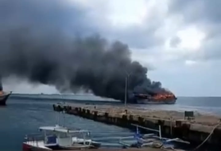 Dalam video yang beredar, terdengar suara pria meminta pertolongan. “Mohon bantuan, mohon bantuan, untuk teman-teman yang ada di Mako ada dua kapal yang terbakar. Mohon bantuan untuk modiva-modiva-modiva,” ucapnya.
