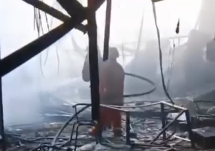 “Meski kondisi api sudah mulai dapat dikendalikan, kondisi bangunan yang terbakar nampak menyeluruh. Kebakaran mencapai 100 persen,” tambahnya.