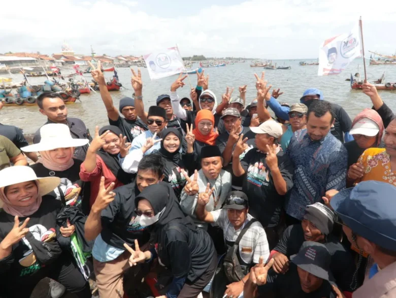Khofifah bersama para nelayan Pasar Ikan Brak Kalimoro, Tembokrejo, Muncar, Banyuwangi.